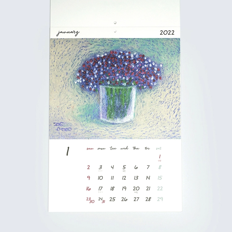투명 풀제본으로 깔끔하게 뜯기고 친환경 종이를 사용해서 무해합니다. 월요일부터 시작되는 달력으로 주중/주말이 쉽게 구분되어 있습니다. 이외수 작가의 시가 있는 낭만적인 달력입니다.